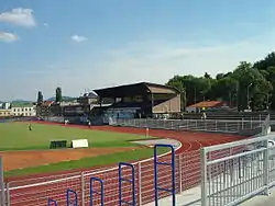 Městský stadion is a multi-purpose stadium in Ústí nad Labem, Czech Republic. It is mainly used for football matches and is the home ground of FK Ústí nad Labem. The stadium had a capacity of 3,000 people (555 seated) before reconstruction. When Ústí were promoted to the Czech First League in 2010, it was ruled that the stadium did not meet the league criteria required by the football association. Therefore, FK Ústí nad Labem's 2010–11 Czech First League matches were played at Na Stínadlech.[1] The ground was upgraded to be available the next season, although the club was subsequently relegated. The reconstructed stadium was reopened in 2014 with a capacity of 4,000 seats.[2]