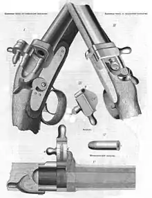It was adopted by the Russian Empire in 1869, and was similar to the contemporary Snider-Enfield and Tabatiere conversions. Conversions were carried out at the Tula armory (TOZ).