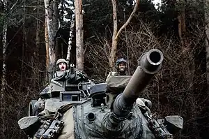 ![]() Front view of a M68E1 gun on an American M60A3 main battle tank during a military exercise in Nuremberg, 1986. | |