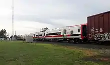 The M8 is an electric multiple unit railroad car built by Kawasaki for use on the Metro-North Railroad New Haven Line and the CTrail Shore Line East. The fleet of 471 cars first entered service in 2011, replacing the M2, M4 and M6 cars, which entered service in 1973, 1987 and 1994, respectively.[9] An additional 60-car order is currently finishing delivery in response to increased ridership and usage on Shore Line East.[10][11]
