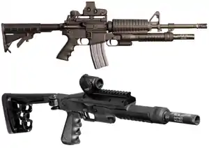 ![]() MAUL shotgun, mounted under a Colt Law Enforcement Carbine above and standalone below | |
