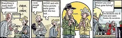 ![]() An example of M strip. The man to the left in the last three panels is Eriksen. The woman is The Madam. | |