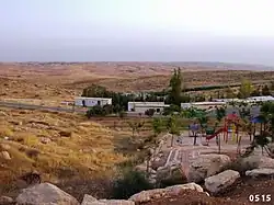 The Israeli outpost was first established in 1981[6] as a paramilitary Nahal outpost. It is located on one side of the main road between At-Tuwani and Tuba, east of At-Tuwani. The first civilian population, members of the Orthodox Zionist youth movement Bnei Akiva settled there in 1982.