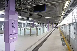 Development of public housing estates commenced in the mid-1980s, with Heng On Estate completed in 1987,[6] followed by Chevalier Garden in 1988.[7] The Ma On Shan line of the MTR, previously the KCR Ma On Shan Rail, was opened in 2004.[8] It was later merged into the Tuen Ma Line.