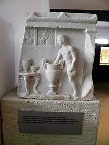 The Classical Greek historians Herodotus and Thucydides reported the legend that the Macedonian kings of the Argead dynasty were descendants of Temenus, king of Argos, and could therefore claim the mythical Heracles as one of their ancestors as well as a direct lineage from Zeus, chief god of the Greek pantheon.[13] Contradictory legends state that either Perdiccas I of Macedon or Caranus of Macedon were the founders of the Argead dynasty, with either five or eight kings before Amyntas I.[14] The assertion that the Argeads descended from Temenus was accepted by the Hellanodikai authorities of the Ancient Olympic Games, permitting Alexander I of Macedon (r.498–454 BC) to enter the competitions owing to his perceived Greek heritage.[15] Little is known about the kingdom before the reign of Alexander I's father Amyntas I of Macedon (r.547–498 BC) during the Archaic period.[16]