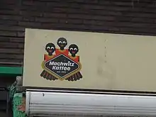 The logo of the Machwitz Kaffee has been criticized as racist and degrading in the modern society, which recognizes of the use of euphemism regarding the history of European colonial African slave trade and African slaves is deeply unjust, insensitive and painful to people who suffered under it and to those who are the descendants of those who suffered under it.[6] The company owner J. Koch has continued time and again to crudely defend the company logo by citing "upholding the company tradition"[7][8] and dismissed the criticism. A tradition that traces back to the German colonial era, a time in which German companies profited ruthlessly through particularly violent and brutal use of slavery in Africa.[6] The defense of keeping "tradition" over the criticism of antiquated Black minstrel characters in European company logos and advertisements has long been cited by other European companies as well, such as the logo of the Italian coffee company Lucaffé.[9]
