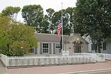 Under American rule, Michilimackinac (the island and adjacent areas) had a justice of the peace, supervisor of roads, and two military captains until the borough was formed.[13] The island's people made a request through Indian Agent William Henry Puthuff on February 2, 1817, that a borough be established on the island and for building a jailhouse. In response on March 15, 1817, Michigan Territory Secretary William Woodbridge issued a proclamation forming the Township of Michilimackinac, giving the jurisdiction's distance from Detroit, the territorial capital. The governor and judges passed an act on April 6, 1817, forming the Borough of Michilimackinac.[14] The borough organizational meeting was held in the Indian Council House, presided over by Puthuff on Monday, July 7, 1817. (The site was within the boundaries of the current Marquette Park). At this meeting, the residents selected the following officers, a warden, two burgesses, a clerk, a marshal and a treasurer. Puthuff was selected as warden, the chief official similar to a mayor. The American Fur Company was formed on Main Street, now Market Street.[13]