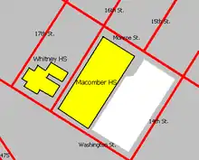 Irving E. Macomber Vocational Technical High School was a vocational public high school in Toledo, Ohio, United States, from 1938[1] to June 1991. It was named for the man who helped develop the city's schools and parks, and who used to live on the property the school was built on.[1] Macomber served the entire city and was part of the Toledo Public School District. The school began as Vocational High School in the original Toledo high school in 1927[2] before moving to its location on Monroe Street in 1938.[3] In 1959 the school became joint-operational with Whitney High School, an all-girls vocational school located just across 16th St., and the two buildings came to be known as Macomber-Whitney.[4] The building still sits on Monroe Street, just northwest of Fifth Third Field.