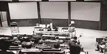 The university first opened to students on 6 March 1967 with more students than anticipated. The Australian Universities Commission had allowed for 510 effective full-time students (EFTS) but Macquarie had 956 enrolments and 622 EFTS.[14] Between 1968 and 1969, enrolment at Macquarie increased dramatically with an extra 1200 EFTS, with 100 new academic staff employed. 1969 also saw the establishment of the Macquarie Graduate School of Management (MGSM).