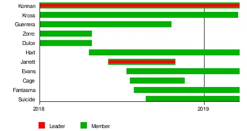 On June 3 at Verano de Escándalo, Juventud Guerrera and Kevin Kross teamed up with El Texano Jr. to win their victory against Pagano, Máximo and La Máscara. That same day, Guerrera introduced their MAD member and turned out to be Jeff Jarrett to announce who will be in the main event for the AAA Mega Championship, later Jarrett beats Wagner and Rey Mysterio Jr. to win the title for the second time with the help of Konnan who makes his return to the AAA.[2] On March 20, 2019, Fantasma announced his departure from AAA as he signed with WWE removing himself from the group. In 2018, Jarrett would also leave the group as he would return to WWE and is a full-time member of the creative team for the company.