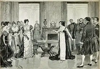 Neipperg is apprehended in suspicious circumstances that make it seem that he is the empress's lover. Napoleon orders his execution. The Lefebvres and their friend Joseph Fouché are compromised by their association with Neipperg. Fouché's enemy Savary hopes to encompass their disgrace, but proof of Neipperg's innocence comes to light at the last moment. Napoleon congratulates Fouché on his cleverness, but has to agree when Fouché tells him that in Catherine he has found someone still cleverer. The idea of a divorce is firmly ruled out, Fouché and the Lefebvres are restored to favour, and Savary is dismissed.[2]