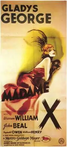 Madame X is a 1937 American drama film, a sanitized remake of several Pre-Code films of the same name.[1][2] It was directed by Sam Wood, with additional direction by Gustav Machatý (uncredited). The film is based on the 1908 play La femme X by French playwright Alexandre Bisson (1848–1912).