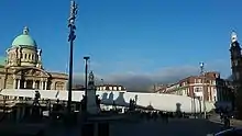 On 8 January 2017, a 250-foot (76 m) rotor-bade was installed in Queen Victoria Square as part of the Look Up series of installations. The blade was manufactured by Siemens at its factory on Alexandra Dock, Hull and was in place until 18 March.[15] The installation, known as Blade, was not announced in the programme and was a surprise to the general public until the small hours of Sunday 8 January, when the giant artefact was slowly driven through the centre of the city and put in place.[16] In an installation devised by artist Nayan Kulkarni, the blade is set at an angle so that the tip is 5.5 metres (18 ft) above the ground, allowing double decker buses to pass underneath.[17] The installation was the first in a series to be known as Look Up, a programme of temporary artworks created for the city’s public spaces and places.[18] After the blade was installed in Victoria Square it was discovered that there was no planning permission for the structure, required because it was to be in place for more than 28 days.[19] City of Culture chief executive Martin Green said that because the installation was a surprise it had been agreed that planning permission would be sought retrospectively.[20]