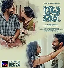 Madhuram (transl. Sweet) is a 2021 Indian Malayalam-language romantic drama film directed by Ahammed Khabeer and written by Ashiq Aimar and Fahim Safar from a story by Khabeer.[1] The film was produced by Joju George and Sijo Vadakkan.[2] The film stars Joju, Shruti Ramachandran, Nikhila Vimal, Arjun Ashokan and Indrans in important roles. The music was composed by Hesham Abdul Wahab and Govind Vasantha (one song).[3]