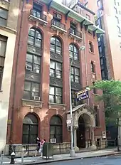 In 1930 the parish leased its property to be developed into the Roger Williams Hotel at 131 Madison Avenue, designed by Jardine, Hill & Murdock and named for the Baptist founder of Rhode Island, with the church sanctuary to be included in the 15-story building.[1] New stained glass was added depicting the writers of the Gospel and their symbols: Matthew/Cherub, Mark/Lion, Luke/Ox, and John/Eagle. The church's parish house, built in 1906, was located around the corner at 30 East 31st Street between Madison Avenue and Park Avenue South.[1] It was sold to a commercial developer in June 2014, demolished in 2015, and replaced by a residential building.[5]
