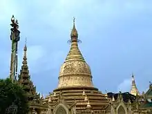 The Maha Wizaya Pagoda (Burmese: မဟာဝိဇယစေတီ; Pali: Māhavijayacetiya) is a pagoda located on Shwedagon Pagoda Road in Dagon Township, Yangon, Myanmar. The pagoda, built in 1980, is located immediately south of the Shwedagon Pagoda on Dhammarakhita Hill.[1] The enshrined relics were contributed by the King of Nepal, while the pagoda's hti (umbrella) was consecrated by Ne Win, the country's former leader.[2] The construction of this particular pagoda is believed by some scholars to have been a form of merit-making on the part of Ne Win.[3]