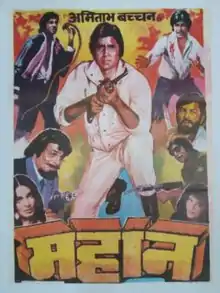 Mahaan (transl. Great) is a 1983 Hindi-language action drama film produced by Satyanarayana and Suryanarayana and directed by S. Ramanathan. The film stars Amitabh Bachchan in a triple role alongside Waheeda Rehman, Parveen Babi, Zeenat Aman, Ashok Kumar, Amjad Khan, Kader Khan, Aruna Irani, Sujit Kumar and Shakti Kapoor. The music is by R.D. Burman.The film is an official remake of the 1978 Kannada film Shankar Guru.[2][3]