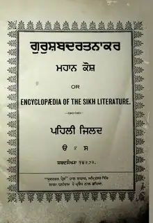Guru Shabad Ratnakar Mahan Kosh (Punjabi: ਗੁਰਸ਼ਬਦ ਰਤਨਾਕਰ ਮਹਾਨ ਕੋਸ਼), known by its more popular name of Mahan Kosh (ਮਹਾਨ ਕੋਸ਼) and by the English title Encyclopædia of the Sikh Literature, is a Punjabi language encyclopedia which was compiled by Bhai Kahn Singh Nabha over fourteen years. It was the first Punjabi encyclopedia, it contains more than 70,000 words, some of them has sufficient reference from Guru Granth Sahib, Dasam Granth, Gur Pratap Suraj Granth and from other Sikh books. It is considered a groundbreaking work in terms of its impact and its level of scholarship.[1]