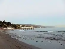Beaches on the Malibu coast include Big Rock Beach, Broad Beach, County Line Beach, Dan Blocker Beach, La Costa Beach,[58] Las Flores Beach,[59] Malibu Beach, Point Dume Beach, Surfrider Beach, Topanga Beach, and Zuma Beach. State parks and beaches on the Malibu coast include Leo Carrillo State Beach and Park,[60] Malibu Creek State Park, Point Mugu State Park,[61] and Robert H. Meyer Memorial State Beach,[62] along with individual beaches such as El Matador Beach, El Pescador Beach, La Piedra Beach, Carbon Beach, Surfrider Beach, Westward Beach, and Escondido Beach.[63] Paradise Cove, Pirates Cove, Trancas, and Encinal Bluffs are along the coast in Malibu. Point Dume forms the northern end of the Santa Monica Bay, and Point Dume Headlands Park affords a vista stretching to the Palos Verdes Peninsula and Santa Catalina Island.