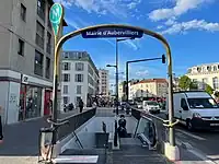 Mairie d'Aubervilliers (French pronunciation: [mɛʁi dobɛʁvilje]) is the northern terminus of line 12 of the Paris Métro. The station is located near Aubervilliers town hall and opened on 31 May 2022. In the future, it will be served by line 15 as part of the Grand Paris Express Project.[2][3][4]