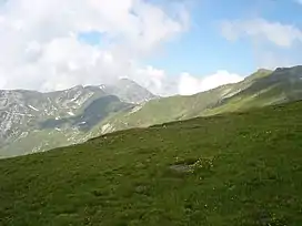 Maja e Zezë (Macedonian: Црн Врв, romanized: Crn Vrv; Serbo-Croatian: Црни Врх, Crni Vrh, Serbian: Островица Планина, Ostrovica Planina), meaning black peak, is a mountain in Kosovo and North Macedonia.[1][2] It is part of the Šar Mountains range and is 2,585 m (8,481 ft) high. To the east of the mountain is Peskovi (2,651 m or 8,698 ft), and to the west of it is Kobilica (2,528 m or 8,294 ft).[3]