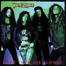 Make Them Die Slowly is the second studio album by American rock band White Zombie, released on March 22, 1989, by Caroline Records. It is named after the 1981 horror film Cannibal Ferox, which was originally released in the US as Make Them Die Slowly. There is a printing error on the CD's side saying "Let Them Die Slowly" instead of the album's correct title. Produced by composer Bill Laswell and featuring John Ricci on guitar, the album represented a transition from the noise rock influenced sound of White Zombie's previous releases to heavy metal, which informed much of their later work.