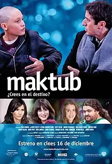 Maktub is a 2011 Spanish comedy-drama film directed by Paco Arango (in his directorial debut feature). Its cast features Diego Peretti, Aitana Sánchez-Gijón, Goya Toledo, Andoni Hernández, Laura Esquivel, and Jorge Garcia, among others.