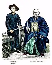 Chinese explorer and sailor Zheng He commanded several expeditions to south-east Asia between 1405 and 1430; during his third voyage, Zheng also visited Malacca.[15] His companion and translator, Ma Huan, described Malacca in his Yingya Shenglan. Formerly part of Thailand, Malacca was founded after convoys from the Ming Dynasty developed a city and the area's chief was crowned king.[16] During his fourth imperial-fleet visit, Ma wrote that the local king had just converted to Islam and dressed like an Arab.[17][18] The last edition of Mingshi, one of the official Chinese Twenty-Four Histories, mentioned a pre-established Chinese settlement in the area.[19] Mentions in other records exist, especially after trade contacts were established with the Nanyang region.[20] According to Hai Yü (Words about the Sea), written by Huang Zhong and published in 1537, the lifestyle of the Chinese community in Malacca differed from that of the local Malays.[21]