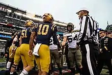 ![]() Perry (left) celebrates a touchdown with receiver Terrence Laster during the 2017 Army–Navy Game | |||||||