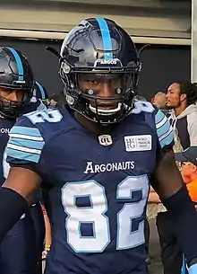 ![]() Williams before a Toronto Argonauts game in 2018. | |