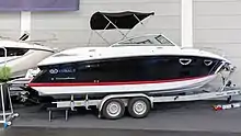 Founded in Neodesha, Kansas in 1968, Cobalt Boats manufactured "high-end speedboats",[21] specifically "mid- to large-sized sterndrive boats, and recently expanded into the surf and outboard markets".[22] Cobalt Boats has its own portfolio of intellectual property, having won a patent infringement lawsuit against Brunswick Corporation, parent company of Sea Ray Boats, over a popular "'retractable swim step', a partially submerged platform off the rear of the boat that allows boat passengers to easily enter and exit the water".[21] The infringed patent was upheld in inter partes review, including claims reciting the "spring-biased locking mechanism" key to operation of the Cobalt swim step, and the infringement judgment was upheld in Federal Circuit Court in September 2017.[23] For the 12 month period ending March 31, 2017, "Cobalt generated approximately $140 million in net sales" selling 24 boat models "through a dealer network of 132 locations in the United States, Canada, and overseas".[22] In 2017, Malibu acquired Cobalt Boats for $130 million, and indicated that it would continue the Cobalt brand and maintain a substantial presence in Neodosha.[22]