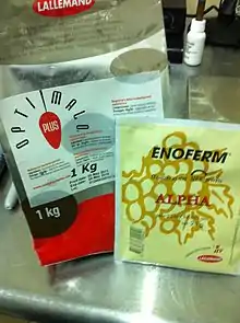 Malolactic conversion (also known as malolactic fermentation or MLF) is a process in winemaking in which tart-tasting malic acid, naturally present in grape must, is converted to softer-tasting lactic acid. Malolactic fermentation is most often performed as a secondary fermentation shortly after the end of the primary fermentation, but can sometimes run concurrently with it. The process is standard for most red wine production and common for some white grape varieties such as Chardonnay, where it can impart a "buttery" flavor from diacetyl, a byproduct of the reaction.[1]