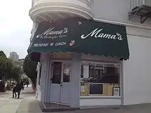Mama's on Washington Square is a family-owned restaurant located in San Francisco’s North Beach neighborhood. The restaurant sits on the corner of Stockton Street and Filbert Street, across from Washington Square Park. Founded in 1964, Mama's serves breakfast, brunch, and lunch as well as its own baked goods and gift baskets. The restaurant specializes in omelettes, salads, and sandwiches, and sells homemade jam, fresh baked bread, and pastries.
