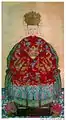 The fengweiqun (凤尾裙) appeared in the Qing dynasty during the Qianlong (r. 1735–96) period no later than 1750.[38] According to author, Shaorong Yang, embroidered fengweiqun with gold threads and made of damask was worn at the end of the Ming dynasty and at the beginning of the Qing dynasty.[43]: 45 It became the most popular style during the Kangxi (r. 1661–1722) and Qianlong period.[44]: 49 The fengweiqun was mostly worn by women who came from wealthy families, but women from less wealthy families may have possibly worn the fengweiqun as a wedding skirt.[44]: 50 This style continued even in the Republic of China period.