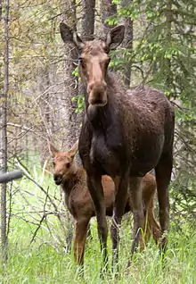 - Moose, Alces alces, montane and subalpine forests, riparian, meadows, uncommon