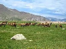 - Elk, Cervus elaphus, montane, and subalpine forests, meadows, tundra, abundant