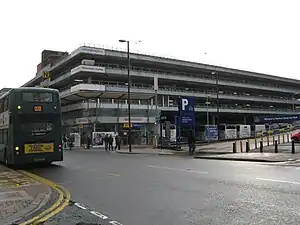 The station was first opened in 1950 and consisted of three platform islands with long shelters. The station was re-designed in 1963 by Leach Rhodes Walker with the addition of a multi-storey car park and was reopened in 1967.[4] Similar to the original station, it had three platform islands and had a semi-open concourse.