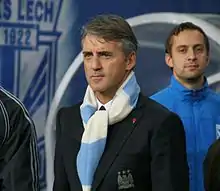 On 27 September 2011, Carlos Tevez who had controversially joined City from United in 2009 was named as a substitute for City's UEFA Champions League game at Bayern Munich.[7] Mancini claimed Tevez refused to come on as a substitute in the second half, when City were 2–0 down to Bayern, although Tevez denied this, calling it a misunderstanding.[8] Tevez's actions received widespread condemnation from various pundits and commentators,[9] with Mancini claiming he wanted Tevez "out of Manchester City", and that he would never play for the club again.[10] Tevez was suspended by City for a maximum period of two weeks as the club began an investigation into whether he refused to come on as a substitute.[11] Following discussions with Mancini, club owner Sheikh Mansour authorised the placing of Tevez on garden leave where the Argentinian would be paid in full but instructed to stay away from the City training ground.[12]