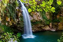 Shingrai Waterfall[39] (often called: ShingroDand) is situated in Shingrai Manglawar, which is situated in Swat Valley, Khyber Pakhtunkhwa the province of Pakistan.[40] It is located 9 kilometres (5.6 mi) from Manglawar and about 18 kilometres (11 mi) northeast of Mingora. Shingrai Waterfall is about 3,000 metres (10,000 ft) above sea level. It is 21 metres (70 ft) wide and about 9 metres (30 ft) in height.[41][42][43]