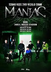 The Maniac World Tour, officially Stray Kids 2nd World Tour "Maniac", was the second concert tour by South Korean boy band Stray Kids in support of their 2022 extended plays Oddinary, Circus and Maxident and 2023 album The Sound. The group played 42 shows across Asia, North America, and Australia. The tour began at Jamsil Arena in Seoul on April 29, 2022, and concluded at BMO Stadium in Los Angeles on April 2, 2023. It was the group's first in-person concert tour since District 9: Unlock (2019–2020).