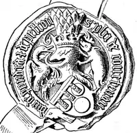 The first Courtenay to have been seated at Molland was Sir Philip Courtenay (c. 1430 – 7 February 1489),[20][21] Sheriff of Devon in 1470,[22] and a Member of Parliament.[23] He was the second son of Sir Philip Courtenay (1404–1463) of Powderham by his wife Elizabeth Hungerford,[24] daughter of Walter Hungerford, 1st Baron Hungerford (died 1449), by his first wife Catherine Peverell, daughter of Sir Thomas Peverell, MP, of Parke and Hamatethy, Cornwall.[25] He was given by his mother the manor of Molland as his marriage portion[26] and established there his own branch of the family.[27] He married a certain Elizabeth (c.1432-1482) (possibly daughter and heiress of John Wonwell (d.pre-1458) of Wonwell in the parish of Kingston, Devon[28]), the widow of William Hingeston/Hyndeston who was an MP for Exeter in 1442 and for Devon 1445–51.[29] Elizabeth had a son from her first marriage named Robert Hyndeston, aged 30 at her death.[30]