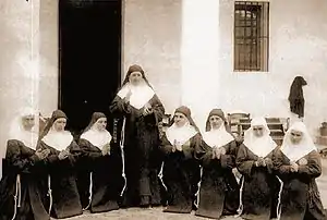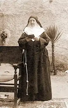 In 1882, the Capuchin priest Bernabé de Astoraga (her spiritual director) and some female friends helped turn her home into a combination of a clinic and school where she would invite people in who needed her aid. On 8 May 1884 she began living with women she rallied at the convent of Our Lady of Victory that she founded in her hometown in a move that established the Franciscan Sisters of the Sacred Hearts.[2][3] On 10 May 1884 the order received diocesan approval from Bishop Miguel Salazar Gomez while it later received papal approval after her death from Pope Leo XIII on 3 May 1902. She made her initial vows with eight others on 17 September 1884 and assumed the habit while making her perpetual profession with her new religious name on 20 February 1889.[1]