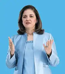 María del Rosario Guerra de La Espriella (15 October 1961) is a Colombian economist, professor and politician who has served as Senator since 2014. She was elected under a newly created political party, the Democratic Center, which is led by former Colombian President Alvaro Uribe. Guerra was the Minister of Communications under President Uribe from July 2006 until January 2010.[1] In March 2017, Guerra announced her candidacy for President of Colombia.[2]