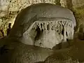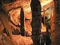 Marble Caves (Russian: Мра́морная пещера, Ukrainian: Мармурова печера, Crimean Tatar: Mermer qobası, Мермер къобасы) is a cave in Crimea, at the lower plateau of Chatyr-Dag, mountainous massif. It is a popular tourist attraction being one of the most visited caves in Europe.