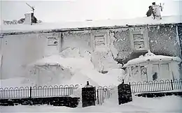 Up to 4.0 ft (48 in) of snow was reported to have fallen in some places with up to 10 ft (120 in) drifts. 15 ft (180 in) drifts were reported in Lancashire. 1 ft (12 in) of snow fell even to low levels in parts of North East Wales.[4]