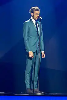 ![]() Mengoni performing "L'essenziale" in the first dress rehearsal of the final of the Eurovision Song Contest 2013 in Malmö, Sweden. | |