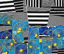 Margaret Lanzetta's work has been exhibited at the Museum of Modern Art[14] and the Queens Museum,[15] New York; the Bangkok National Museum (pop up exhibition); the Weatherspoon Art Museum, North Carolina; and the Nicolaysen Art Museum, Wyoming. The New York MTA Arts & Design commissioned Lanzetta's first public, permanent work, Culture Swirl, a series of seven faceted glass-paneled windscreens, for the Norwood Avenue subway station in 2007.[16] In 2020, Norte Maar commissioned new work by Lanzetta for CounterPointe 8, in collaboration with choreographer Mari Meade.[17] Lanzetta silkscreened on harlequin print rayon, silver brocade, and magenta Thai silk to create swirling textile panels incorporated into the dance. The collaboration, entitled Strategy Royale, premiered to Alessio Natalizia's "24" by Not Waving.