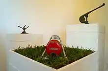 Two other pieces are "Scaled Discords, 2015", with spinning tops representing "power structures, resource allocation and racial inequality in America", and "A Shit Pile of Lights and Sounds for Your Pleasure" consisting of "mash-up of Lite Brite, a Ouija board, and an early Akai sampler".[6]