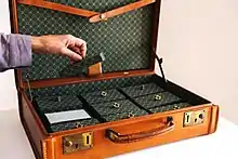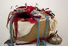 Noble's installation 44th and Landis opened in 2012 at the Museum of Contemporary Art San Diego. The large-scale multimedia art piece combined Victorian-style paper dolls with 1980s urban influences based on her upbringing in San Diego's City Heights neighborhood, and included a performance by Noble.[5][18] The show's visual centerpiece was a hanging series of 100 paper dolls, along with paper-doll clothing, objects and architecture.[19] In her 2016 interactive piece "What Lies Beneath", she worked in sound sculpture, creating a tall wooden box with instructions next to it to raise the lid, which caused sounds of organ pipes, truck brakes and other dissonance to emit. The person interacting with it controlled the sound with the lid, with a "storm" inside the box.[3]