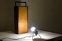 Her "Head in the Sand" is a wooden box sitting on four legs with a head-sized hole in the top and instructions to visitors to place their heads in the hole and wait. Inside is a chambered light and sound show with soft pastoral sounds, the hole serving as a sanctuary from the art exhibit itself.[3] "Head in the Sand" was included in her 2016 exhibition Resonating Object, an interactive mixture of sound, sculpture and videos, at South Puget Sound Community College in Olympia, Washington. The exhibition also included "I Long to Be Free From Longing" and "Material Shrine for the New Class", featuring dangling objects the visitor could squeeze to activate different sounds.[20] Her 2014 interactive sound installation "I Long to Be Free From Longing" won first place in the 23rd annual Juried Exhibition at the Athenaeum Music & Arts Library in San Diego.[21]